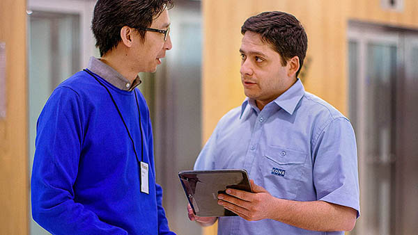 通力的維修技術(shù)人員都是訓(xùn)練有素且工作認(rèn)真的專業(yè)人員,他們能讓您的電梯、自動扶梯和自動門始終保持正常、安全的運(yùn)行。他們每年接受超過50小時的技術(shù)、安全、客服和急救培訓(xùn)。我們的技術(shù)人員還可訪問通力全球技術(shù)知識庫,能夠快速解決各種品牌和類型的設(shè)備所出現(xiàn)的問題,通常上門一次就能解決大部分問題。